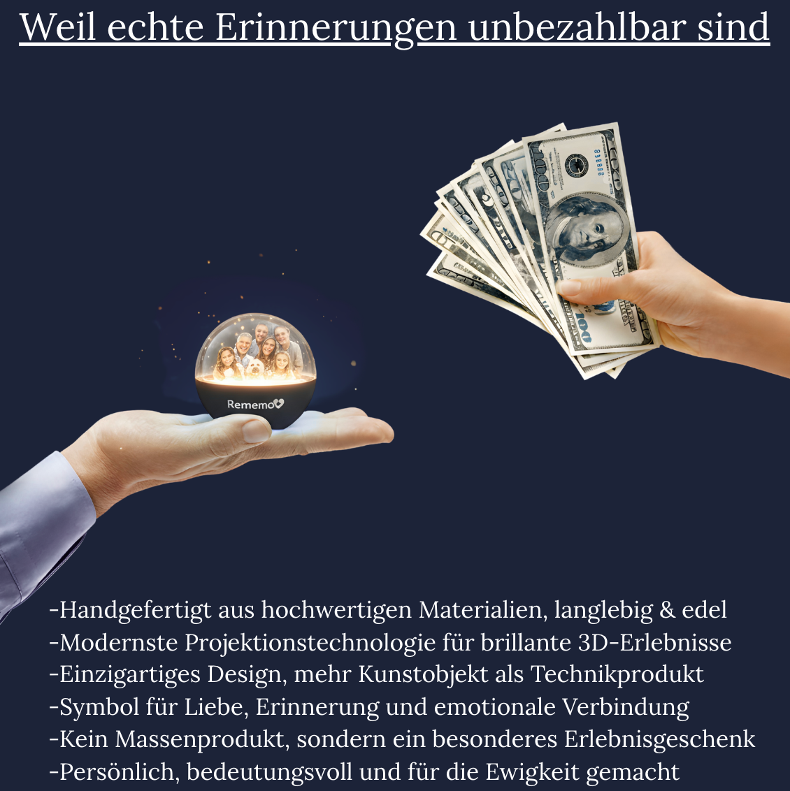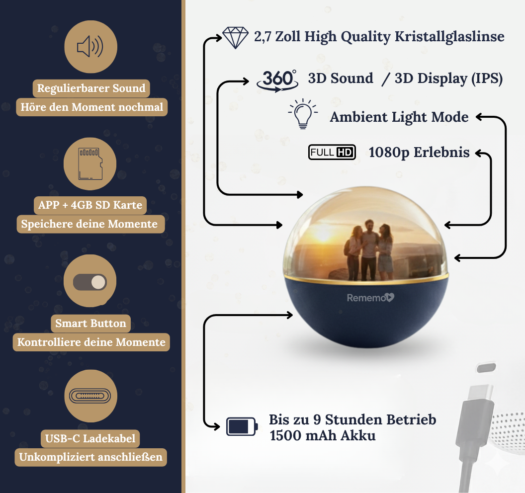 Tauche ein in die Welt deiner wertvollsten Erinnerungen und erlebe, wie Momente lebendig werden. Die ChronoLicht Kristall-Kugel wurde konzipiert, um deine persönlichen Geschichten auf eine Weise zu präsentieren, die Herz und Seele berührt.